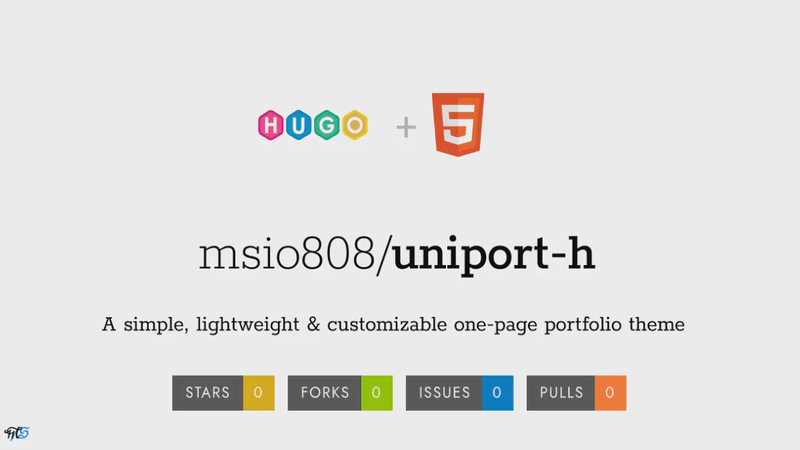 Uniport-H is a clean, responsive, one-paged, and lightweight customizable portfolio theme built for Hugo. The theme is easy to customize, It also comes as a GitHub template so it's easy to install & use. The design is partly inspired by Brian Yu's Website